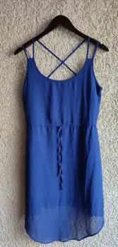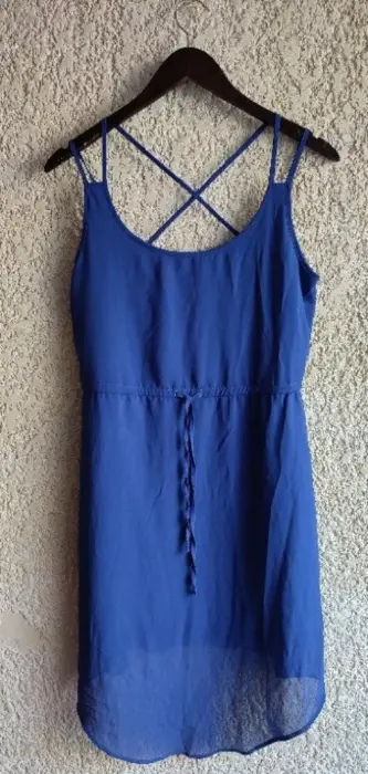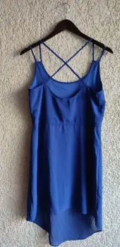 VESTIDO TALLA S AZUL ELECTRICO. VESTIDO CON TIRANTES AZUL MARINO, TALLA S, CUERPO 100% POLIÉSTER, RECUBRIMIENTO 100% POLIÉSTER.MEDIDAS:DE CINTURA 40 CMDE LARGO 85 CM INTERNA 97.5 EXTERNADE AXILA A AXILA 45 CMDE HOMBRO A HOMBRO 38 CM
