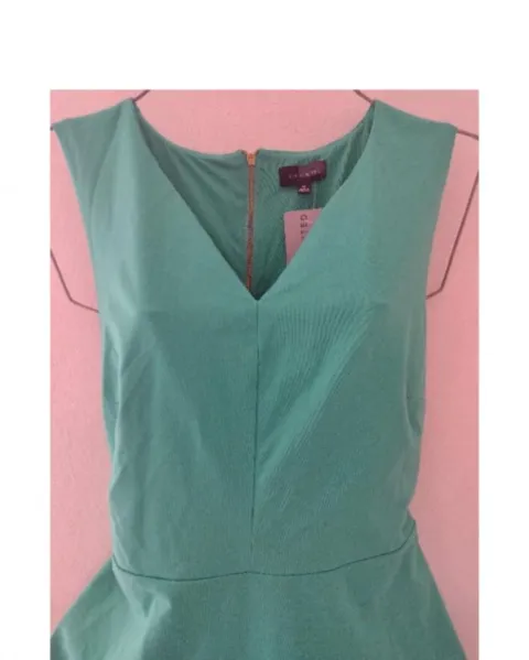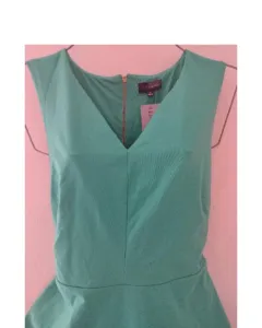 Hermos vestido strech nuevo con etiqueta en color verde con escote en V corte de linea A favorece a mujeres curvi super padre sus medidas de hombro a hombro 36cm, de axila a axila 51cm, cintura 49cm, cadera 76cm y largo total 98cm.