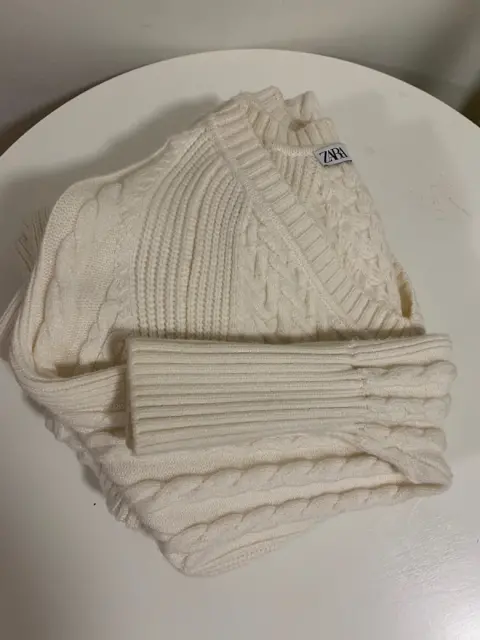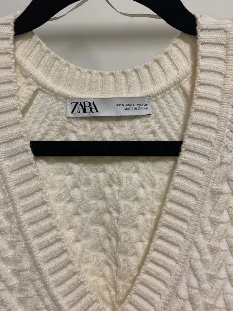 Vestido tejido 8 Zara. Color crudo , tela suave , un poco de expandex , cuello v Talla S