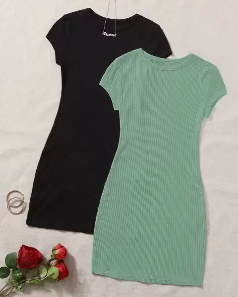 vestido tejido de canalé. 2 piezas vestido tejido de canalé talla S