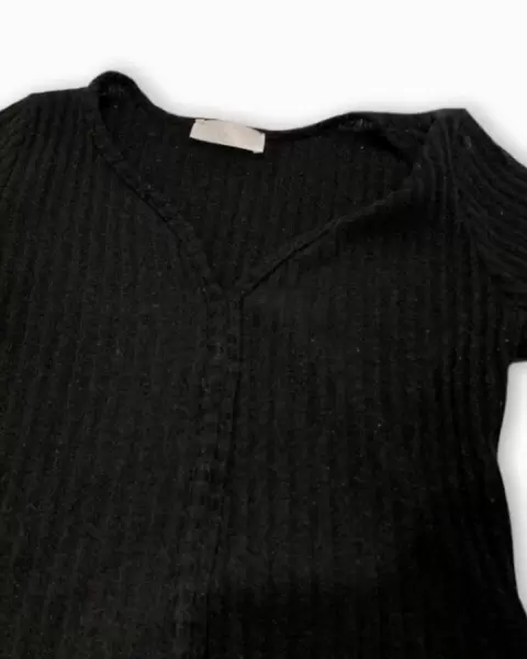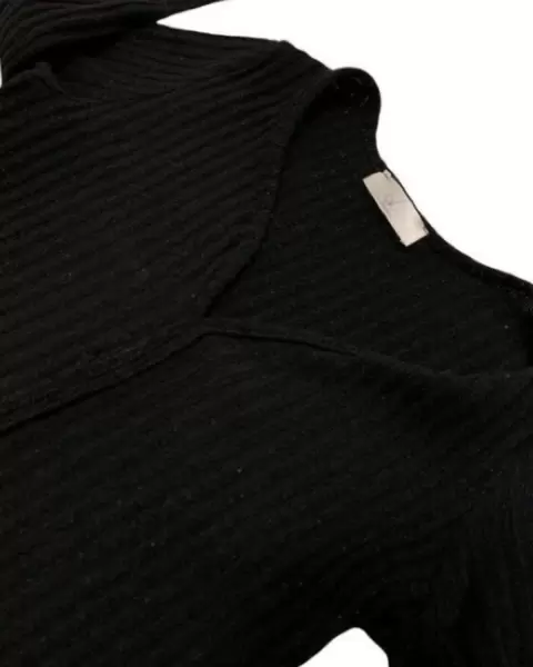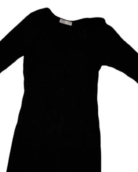 Vestido tejido negro. Cómodo vestido de tela estilo suéter (estira) de una sola pieza en color negro. Manga tres cuartos. Medidas en las imágenes .