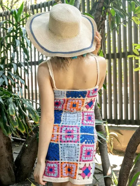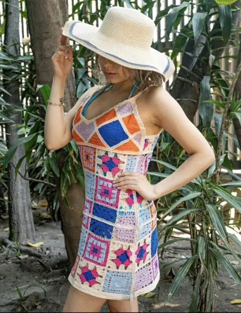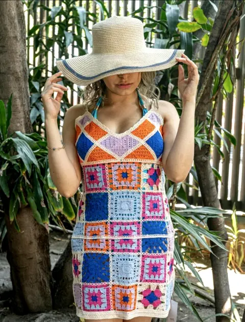 Hermoso vestido de salida de playa, tipo tejido para darle un toque único.Es unitalla, es decir para todas las tallas.
