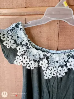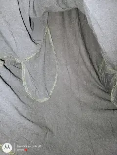 Vestido color verde militar, T-S, en perfecto estado. Tiene bolsitas laterales escondidas, tela fresca y suave, muy ligero, manguitas a los hombros con detalle tipo tejido color beige