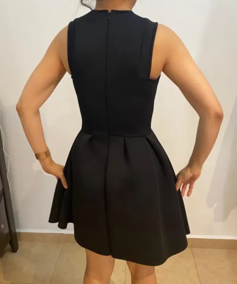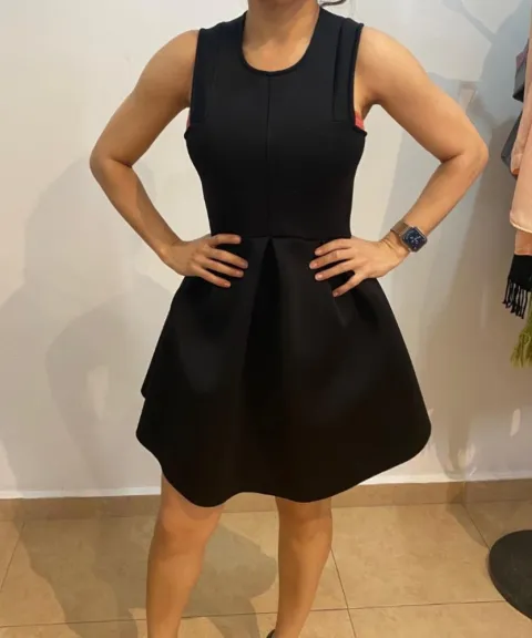 Vestido tipo coctel corto, con un modelo sexy, sin mangas en buenas condiciones es ajustado arriba talla chica