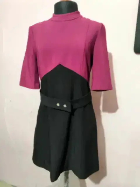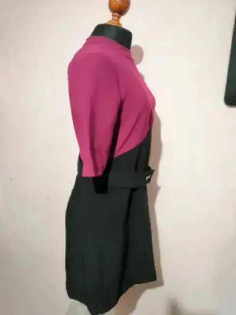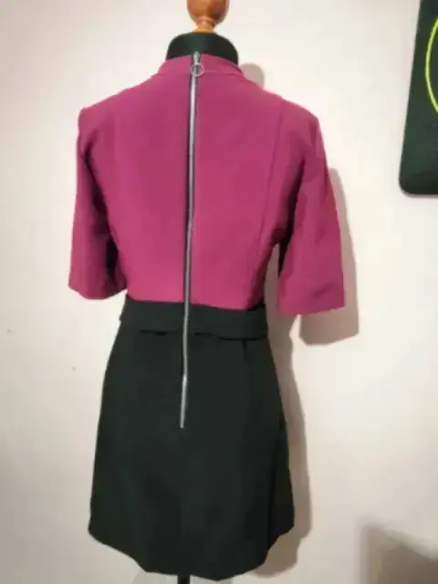 Vestido tipo formal Sfera talla L. Viene como entre talla 30-32 MX axila a Axila mide 45 CM, cintura 38 CM, largo mide 88cm desde el hombro no tiene detalles, arriba es color vino y abajo negro