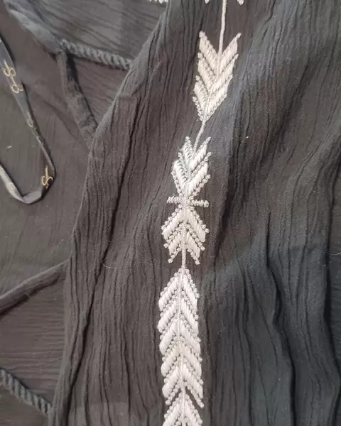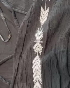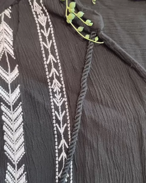Bonito y supercomodo , fresco vestido tipo guayabera color negro con bordados al frente yen las mangas color blanco manga 3/4 largo a la rodilla puede usar con un cinturón o cintilla para acentuar la cintura