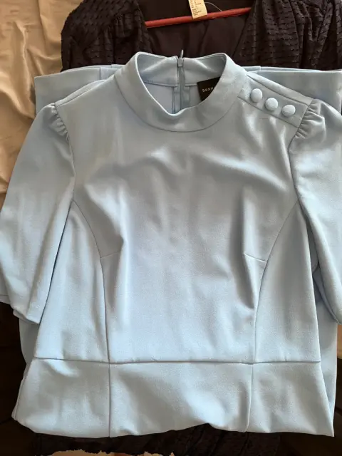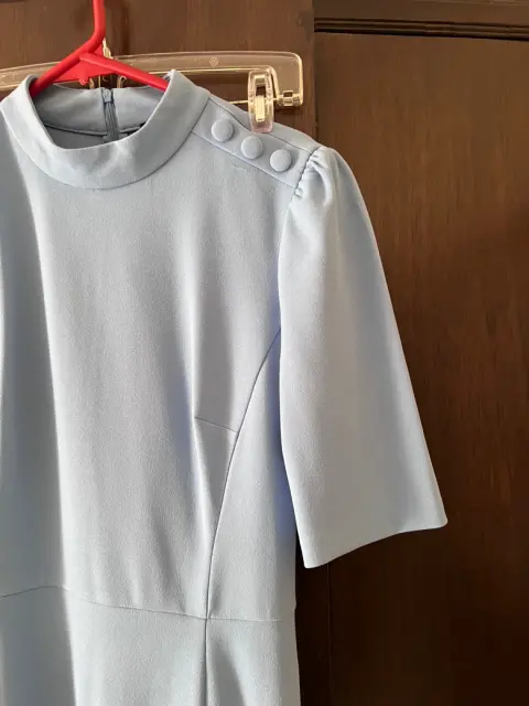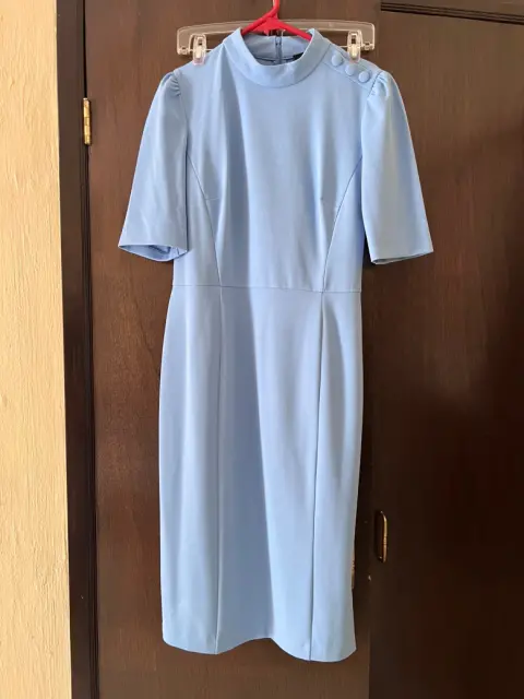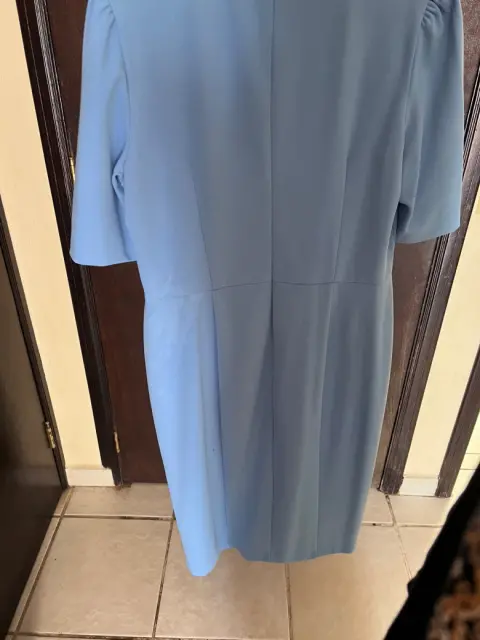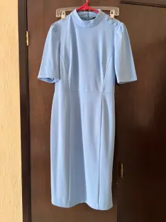 Vestido tipo lápiz. Vestido tipo lápiz largo Chanel azul cielo detalle de botones en hombros tela estira