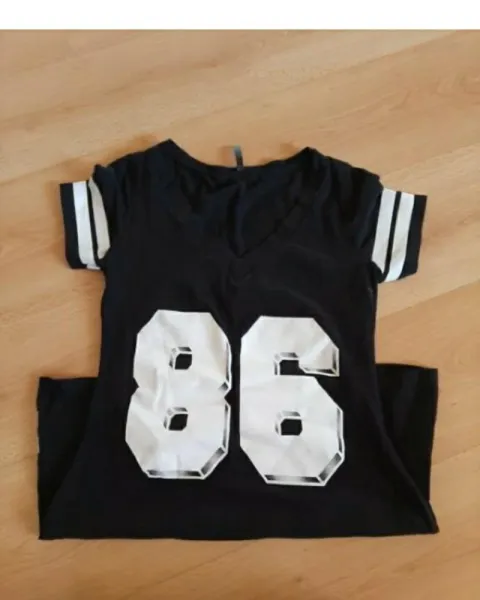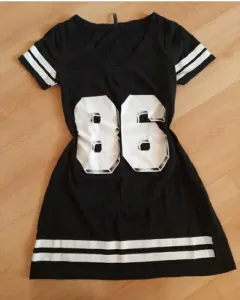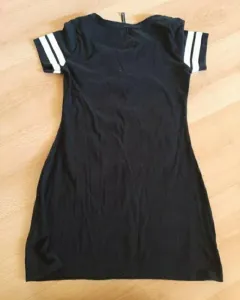 Vestido tipo playera negro. Vestido tipo playera, llega a media pierna. Me quedó chico por lo que está prácticamente nuevo