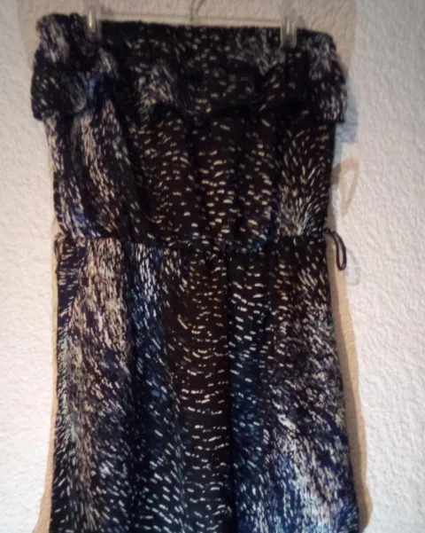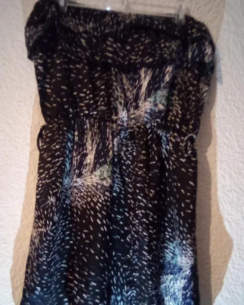 Vestido tipo playero. Vestido, tipo playero, strapless, con detalla de olan en el escote, semi transparente, muy fresco