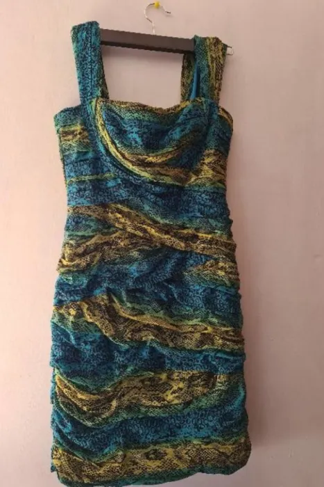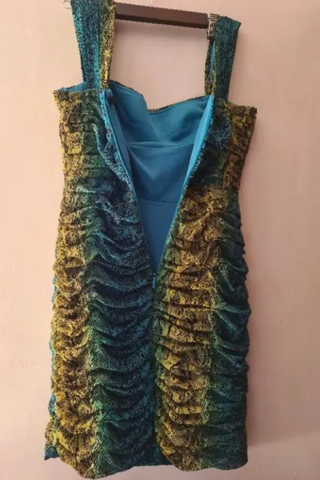 Vestido tirantes de coctel ideal para fiestas en jardín. Medidas: pecho: 38.5 cm; cintura: 31.5 cm: y largo 68 cm.