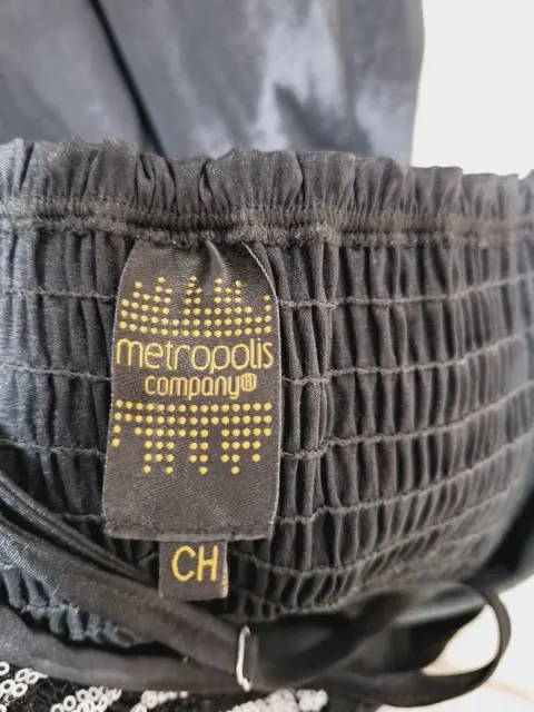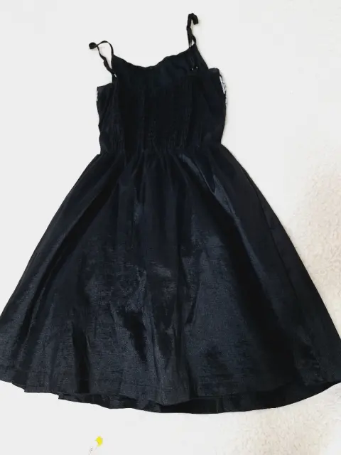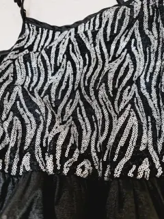 VESTIDO TIRANTES NEGRO TALLA S, aplicaciones en busto, lentejuela chica en plata mate, usado una vez, sin detalles.Medidas:De axila a axila 40cm (con resorte en esplda) si estiraCintura 38cm (estira un poco mas)Largo 85cm