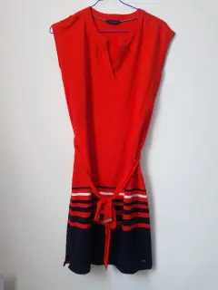 Vestido talla XS marca Tommy Hilfiger en color rojo con líneas en azul.