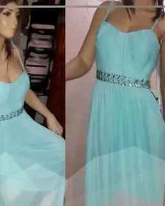 Vestido turquesa con pedreria de Liverpool talla 10 marca Rimini couture