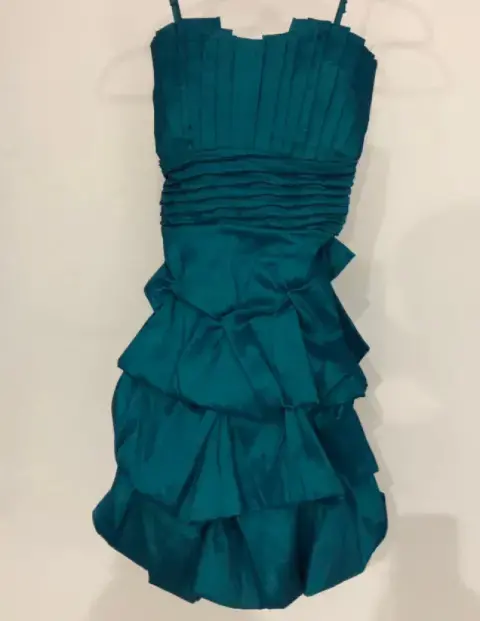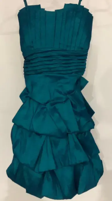 Vestido mini, llega a media piernaMarca: Duo WomanColor turquesaTalla chicaStraplessSe uso una sola vez