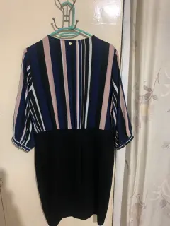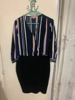 Vestido una sola pieza. Vestido de una sola pieza, con broche en el area del busto, falda tela stretch a la rodilla, manga 3/4