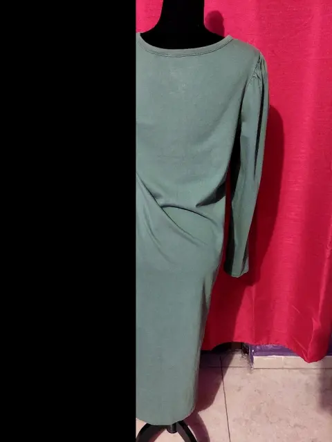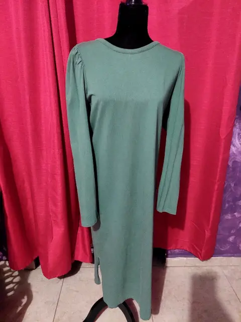 Vestido camisero talla M, con aberturas laterales, totalmente nuevo, sin detalle, en las fotos parece chapado en algunas partes, pero no está así, tiene un color verde militar claro. De largo 117cm.