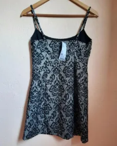 Vestido completamente nuevo, gris con detalles en negro. Talla S.