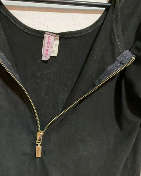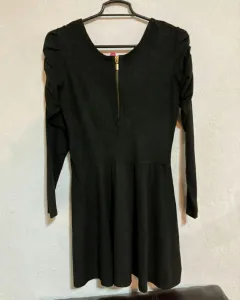 Vestido de gamusa con detalle en los hombros, cierre al frente y manga larga