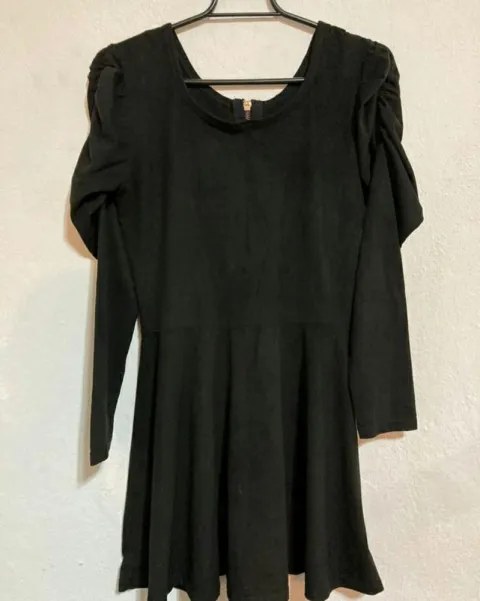 Vestido VAM & GAS. Vestido de gamusa con detalle en los hombros, cierre al frente y manga larga