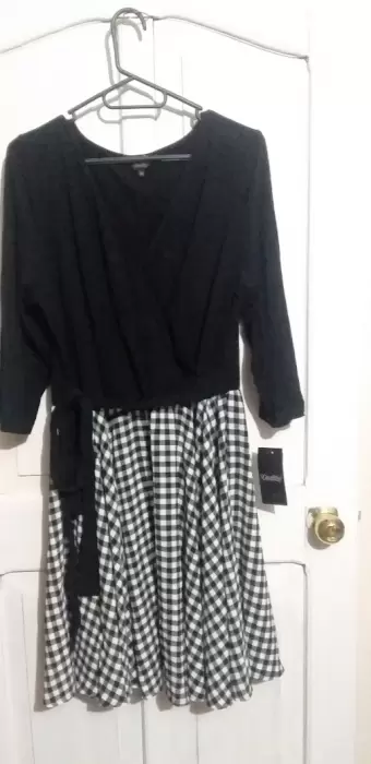 Vestido Vanity xg nuevo. Vestido Vanity nuevo escote cruzado blusa de algodón y elastano, con cinturón y falda a cuadros talla xg o 36 amplio, largo abajo de las rodillas