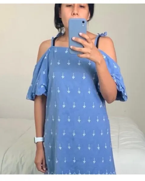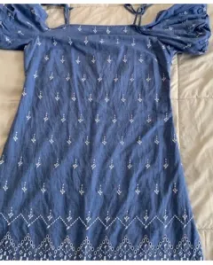 Hermoso vestido veraniego de mezclilla súper ligera, súper femenino, talla 8 que le queda Perfecto a talla mediana, de tirantes y mangas abombadas a los lados, largo arriba de la rodilla. Si te interesa no dudes en preguntar y/o ofertar con confianza ☺️