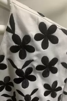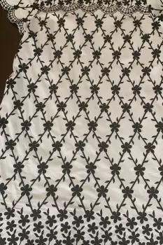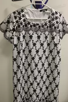 Vestido de diseño español, manga corta, bordado. 97cm largo, 42cm hombro, 57cm axila.