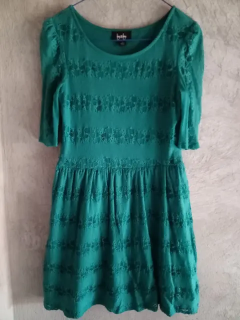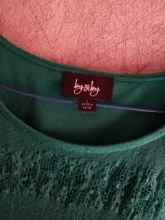 Lindisimo vestido verde manga tres cuartos ,tela fresca tipo encaje ,no estira mucho es más o menos talla mediana y te llega a la altura de la rodilla .
