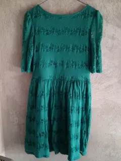 Vestido verde. Lindisimo vestido verde manga tres cuartos ,tela fresca tipo encaje ,no estira mucho es más o menos talla mediana y te llega a la altura de la rodilla .