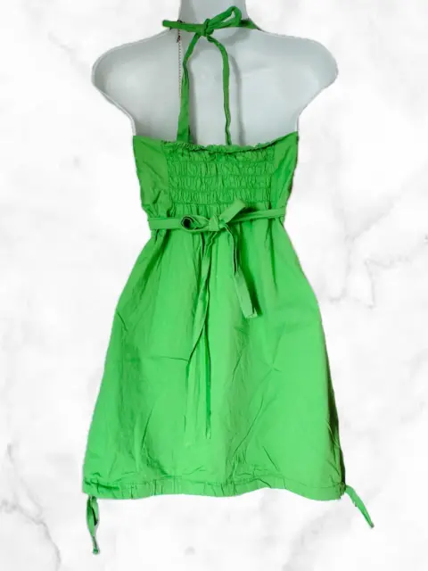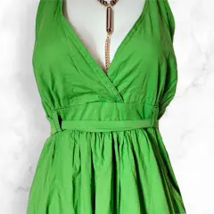Vestido verde cuello en V. Verde limónCuello en VResorte en la espaldaCinta para ajustar en la cintura40 Debajo del pecho (dónde queda la cinta)45 cm de axilas a axila82 cm de largo de frente desde donde inician los tirantes (se ajusta del cuello puedes dejarlo más largo si quieres)