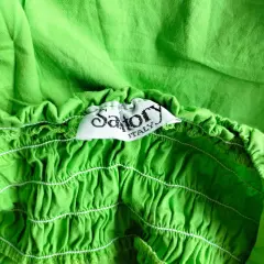 Verde limónCuello en VResorte en la espaldaCinta para ajustar en la cintura40 Debajo del pecho (dónde queda la cinta)45 cm de axilas a axila82 cm de largo de frente desde donde inician los tirantes (se ajusta del cuello puedes dejarlo más largo si quieres)