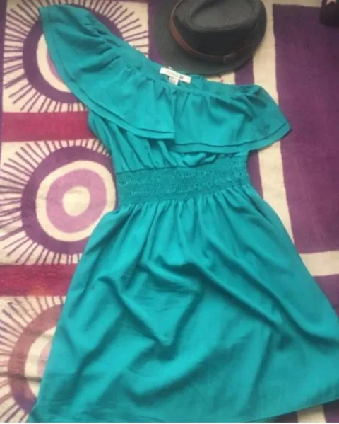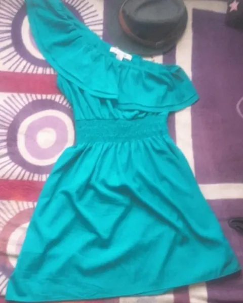 Vestido verde FOREVER 21. Vestido talla S diseño de un solo hombro, ideal para esta temporada