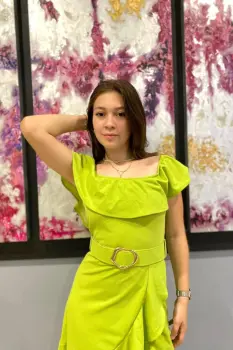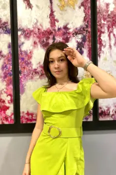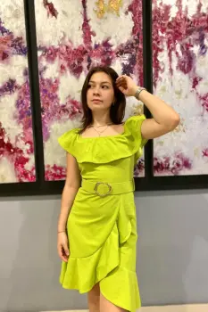 Vestido verde limón con cinturón