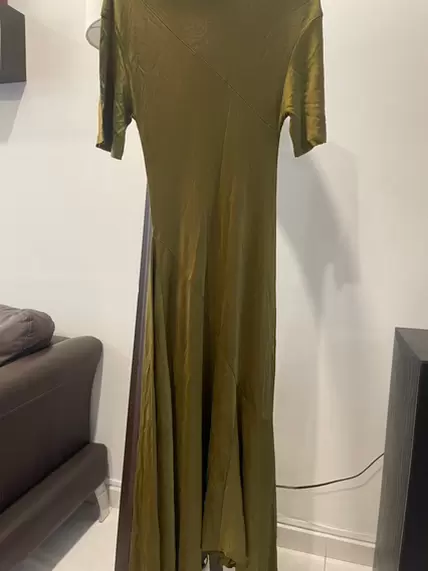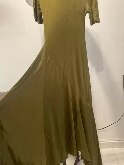 Vestido casual/formal color verde militar de una tela ligera, se ve bien con tacones o con tenis blancos 🤍 está en perfecto estado, una sola puesta