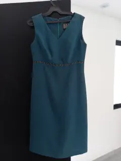 Vestido de fiesta color verde Olivo , Talla M , marca Star Dance con detalle de pedreria en talle alto