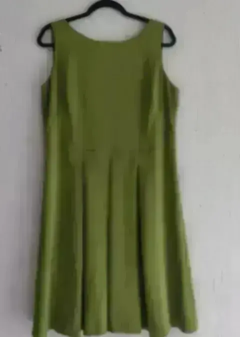 Vestido verde olivo midi. Ajusta mediante cierre, de axila a axila mide 56cm, de largo da a la altura de la espinilla, no tiene detalles