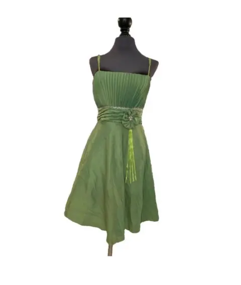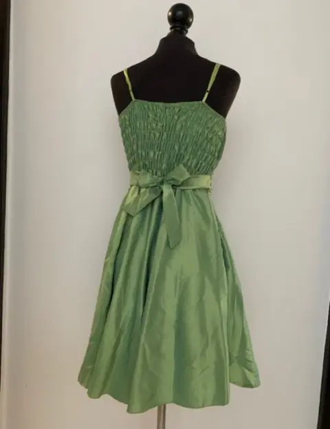 VESTIDO VERDE ROCIO JESMAR TALLA CH. Bonito, ligero y cómodo vestido de fiesta talla ch de la marca Rocio Jesmar. Tiene bonitos detalles de pedrería en la cintura y un moñito bonito que puedes quitar si gustas ya que está sujeto con un segurito.Medidas de axila a axila 35 cm y estira hasta 45 cm, cintura 32 cm y estira hasta 36 cm.