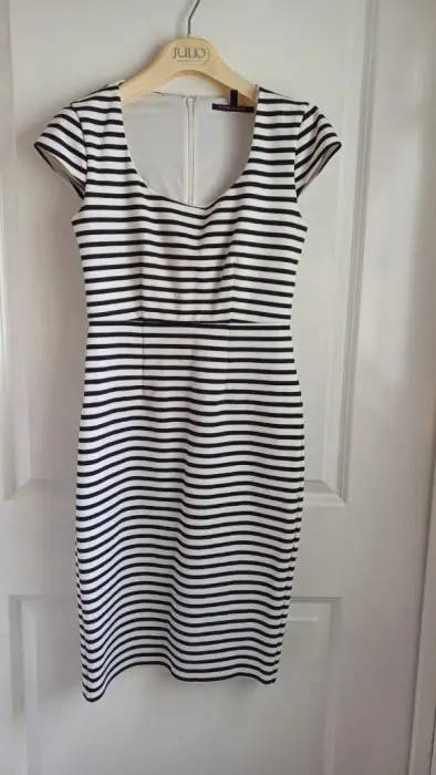 Vestido largo Victoria's Secret, a rayas blanco y negro, tela de algodón strech. Talla 4