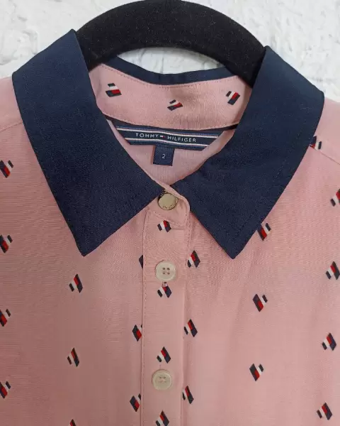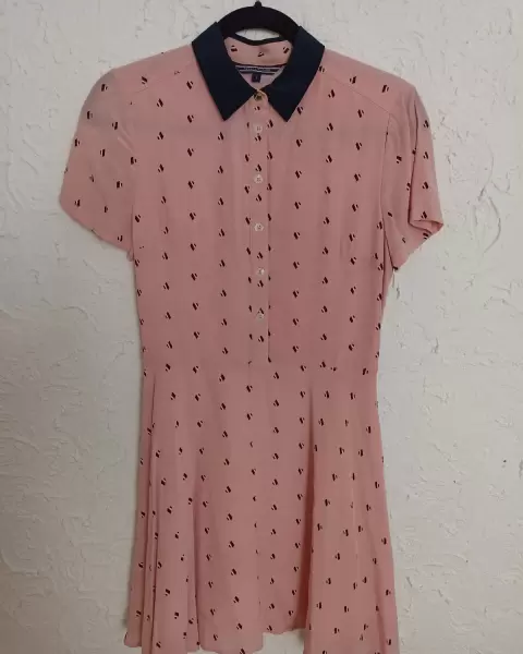 Vestido camisero tipo polo rosa pastel con logo de Tommy super bonito , talla 2 (chica-xs) lleva pinzas en el busto para un ajuste queda muy bonito arriba de la rodilla