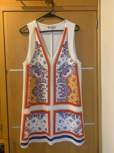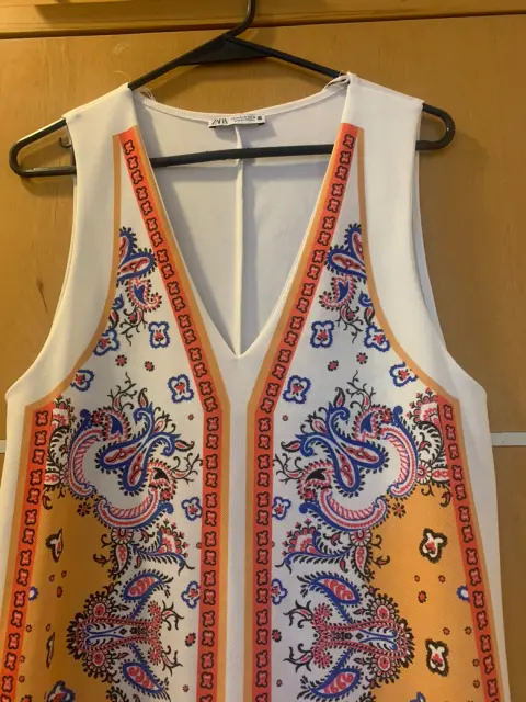 VESTIDO ZARA 💛🧡. Hermoso vestido ZARA con estampado al frente, sin mangas, tiene un pequeña jalada en la espalda pero no es muy notoria, ( ultima foto) no se transparenta