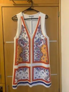 Hermoso vestido ZARA con estampado al frente, sin mangas, tiene un pequeña jalada en la espalda pero no es muy notoria, ( ultima foto) no se transparenta