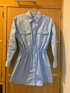 VESTIDO ZARA 💙❤️. Hermoso vestido marca ZARA con botines al frente y elástico en la parte de la cintura, no tiene ningún detalle, manga larga, color azul mezclilla, súper bonito y combinable !!!