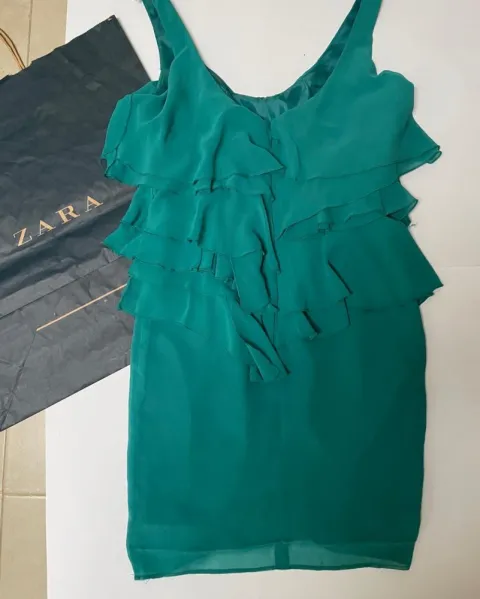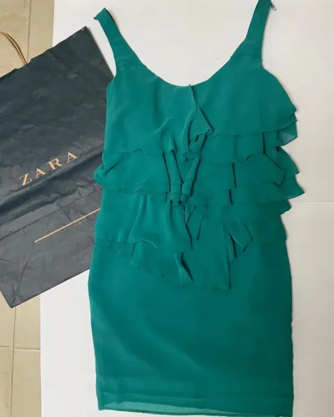 Vestido Zara. Vestido con olanes al frente y atrás, es un poco ajustado, puesto se ve muy bonito, por dentro tiene forro y en los tirantes tiene broches para sostener los tirantes del brazier