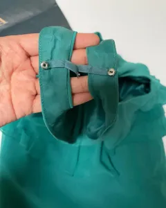 Vestido con olanes al frente y atrás, es un poco ajustado, puesto se ve muy bonito, por dentro tiene forro y en los tirantes tiene broches para sostener los tirantes del brazier