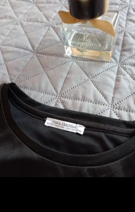 Vestido Zara middi. Vestido satinado, cuenta con forro Queda a talla S o MTiene hombros descubiertos Corte recto