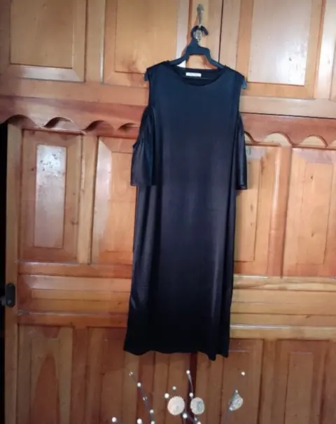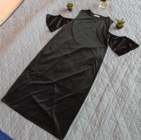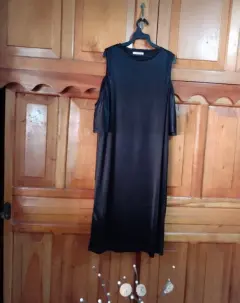 Vestido satinado, cuenta con forro Queda a talla S o MTiene hombros descubiertos Corte recto