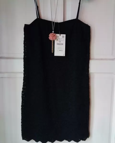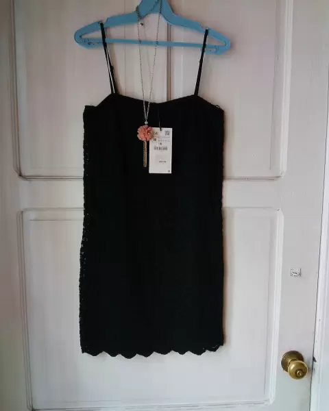 Vestido Zara de encaje talla M, busto 80, con forro, Largo 67 cm, ideal para cualquier reunión.