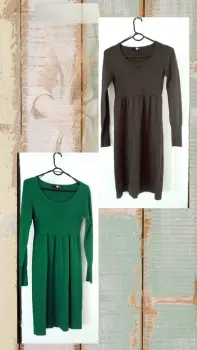 Porque dos es mejor que uno!!!Luce espectacular con estos vestidos en lana, largo a la altura de la rodilla, tienen manga larga y son ajustados hasta debajo del busto, el resto del corte es semi holgado, lo que permite el realce de tu figura!!!Vestido gris y su compañero color verde aguamarina.