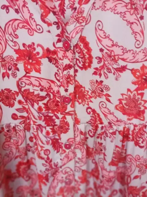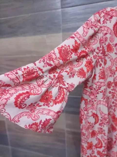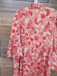 Hermoso y amplio vestido Lorenza Blau , con mangas amplias 3 cuartos y botones al frente.Muy bonito para un look casual y moderno.Tela delgada pero no se transparenta