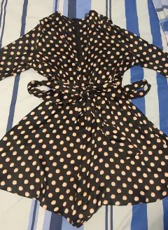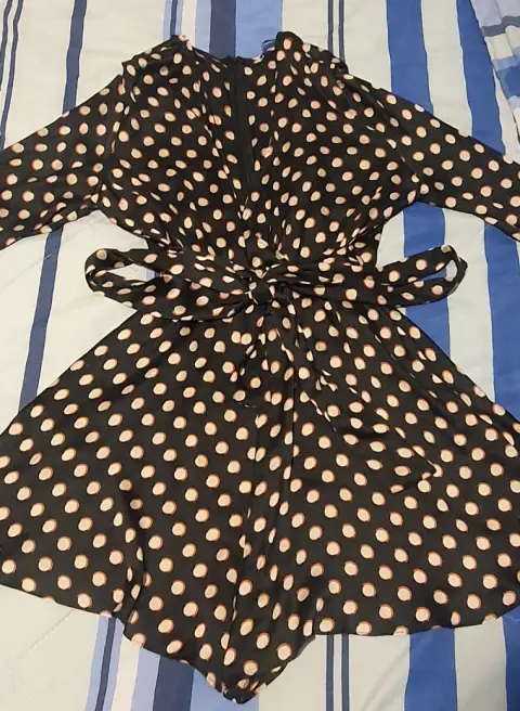 Vestido con short en la parte de abajo, con cinta en la cintura para ajustar. Cuello V.