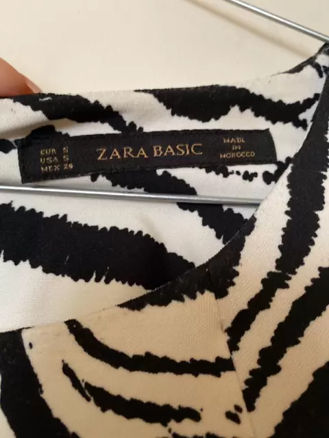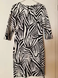 Zara. Vestido cebra. Esta perfecto, muy en tendencia y listo para seguir usándose, talla s pero queda perfecto a m también. 90cm largo y 43cm ax